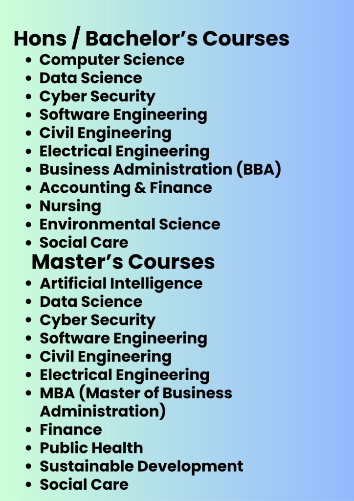In addition to the courses listed above, we offer admission support for many other undergraduate and postgraduate programmes across various fields of study